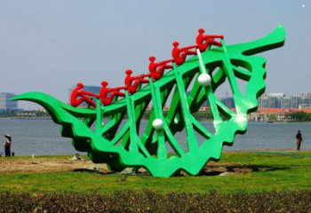 龍舟是中國民間傳統水上體育娛樂項目,是一種多人集體劃槳競賽,多是在喜慶節日舉行,現流行于中國及世界上一些國家與地區。龍舟雕塑制作步驟:設計圖紙→畫線放樣→裁料鍛造→組合焊接→打磨噴漆→發貨安裝。龍舟雕塑用來表達龍舟世界城的特色、張揚商業街的主體個性、感染靈魂,新穎別致的龍舟雕塑不僅美化環境的作用,同時增強文化樂趣、展現時代文化。