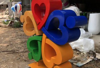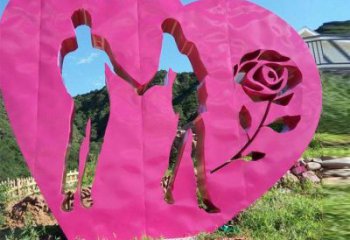 以抽象組合的愛心圖案與坐標點為元素,構成雕塑主體。圓環刻有坐標點的數據,虛的部分掛上愛情鎖,象征永恒的愛情。雕塑構圖圓滿,寓意幸福團團圓圓。雕塑為金色不銹鋼,象征金色年華及美麗的愛情。表達了當代人們對愛情的美好向往。